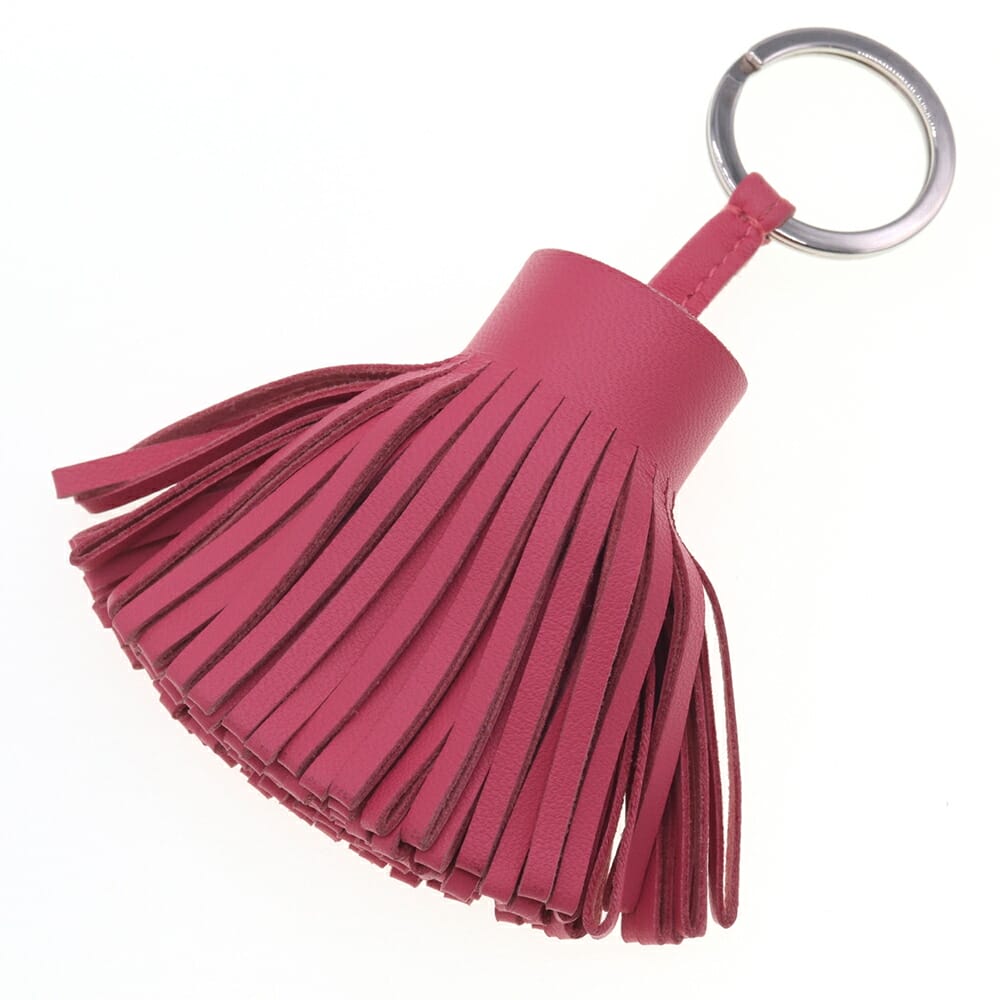 エルメス キーリング カルメン ピンク レザー 中古 キーホルダー バッグチャーム 鍵 カギ タッセル フリンジ レディース