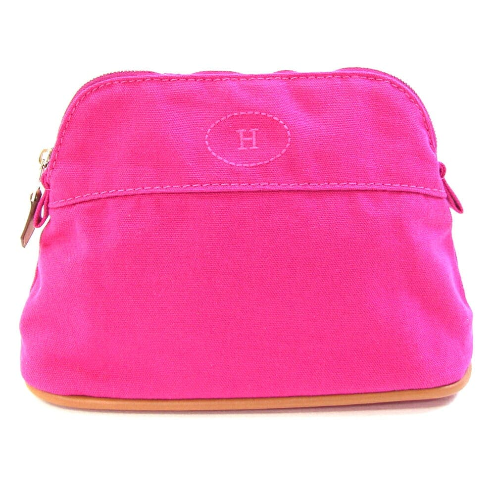 エルメス ポーチ ボリードポーチPM ピンク オレンジ コットンキャンバス レザー 中古 Hロゴ 半月型 コスメ マルチ 化粧品 レディース