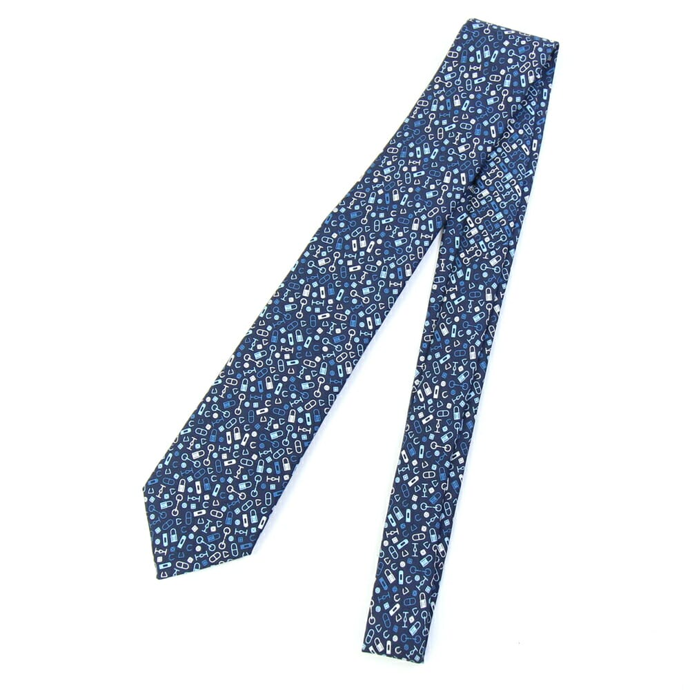 エルメス ネクタイ シルクタイ 7CM 150282T ネイビー シルク100% 中古 スーツ ビジネス フォーマル シェーヌダンクル メンズ