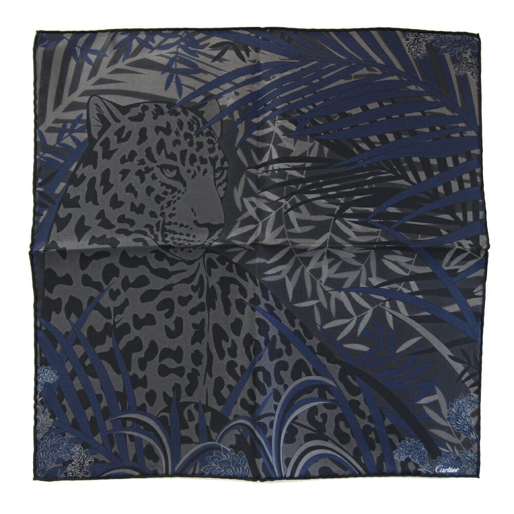 カルティエ スカーフ パンテール グレー ネイビー シルク100% 中古 ストール パンサー ノベルティ 顧客限定 非売品 レディース