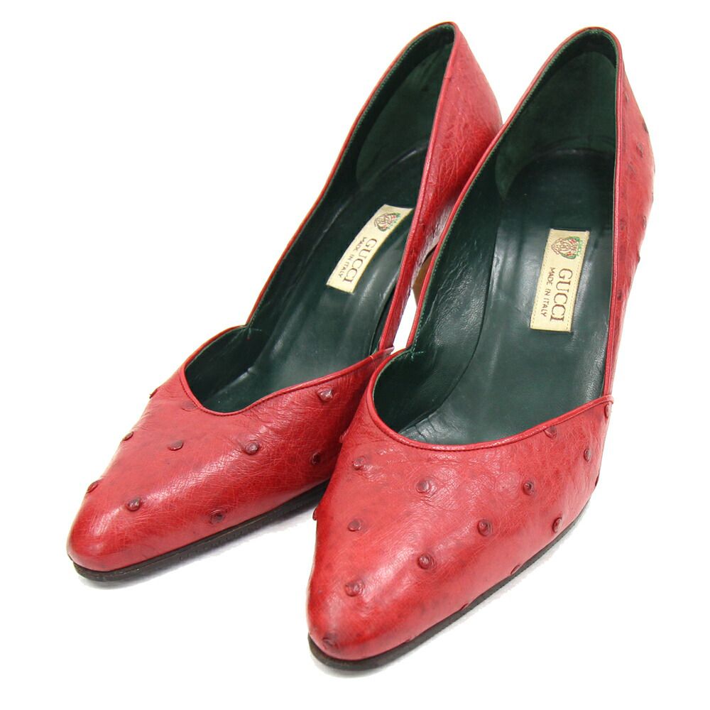 グッチ パンプス レッド オーストリッチ サイズ36 中古 レディース ハイヒール 赤 ヴィンテージ