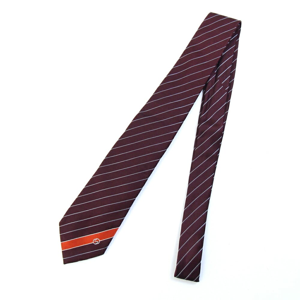 グッチ ネクタイ 408866 ボルドー シルク100% 中古 スーツ ビジネス ファッションストライプ メンズ
