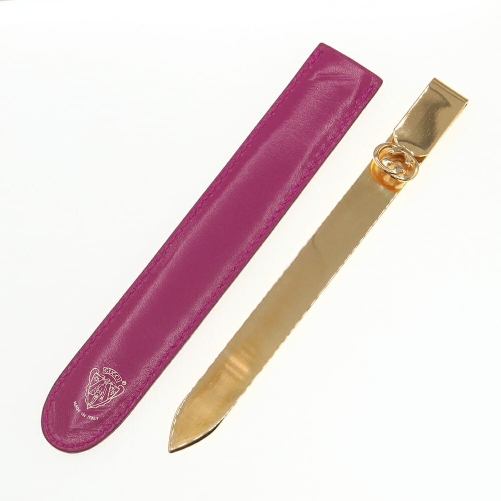 グッチ ペーパーナイフ パープル ゴールド レザー 中古 レターナイフ オープナー GGロゴ ヴィンテージ
