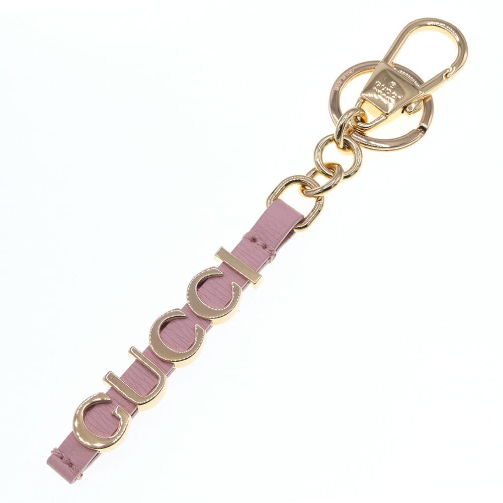 グッチ キーリング スクリプト キーチェーン 773970 ピンク ゴールド金具 レザー メタル 中古 キーホルダー バッグチャーム ロゴ レディース