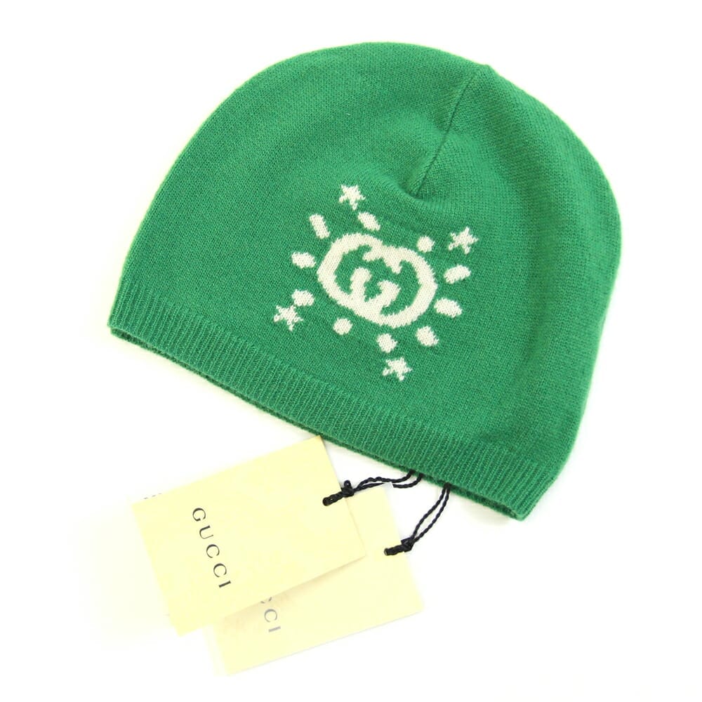 グッチ ニットキャップ インターロッキングG 749513 グリーン ウール100% 中古 ニット帽 帽子 ロゴ キッズ チルドレン 子供用