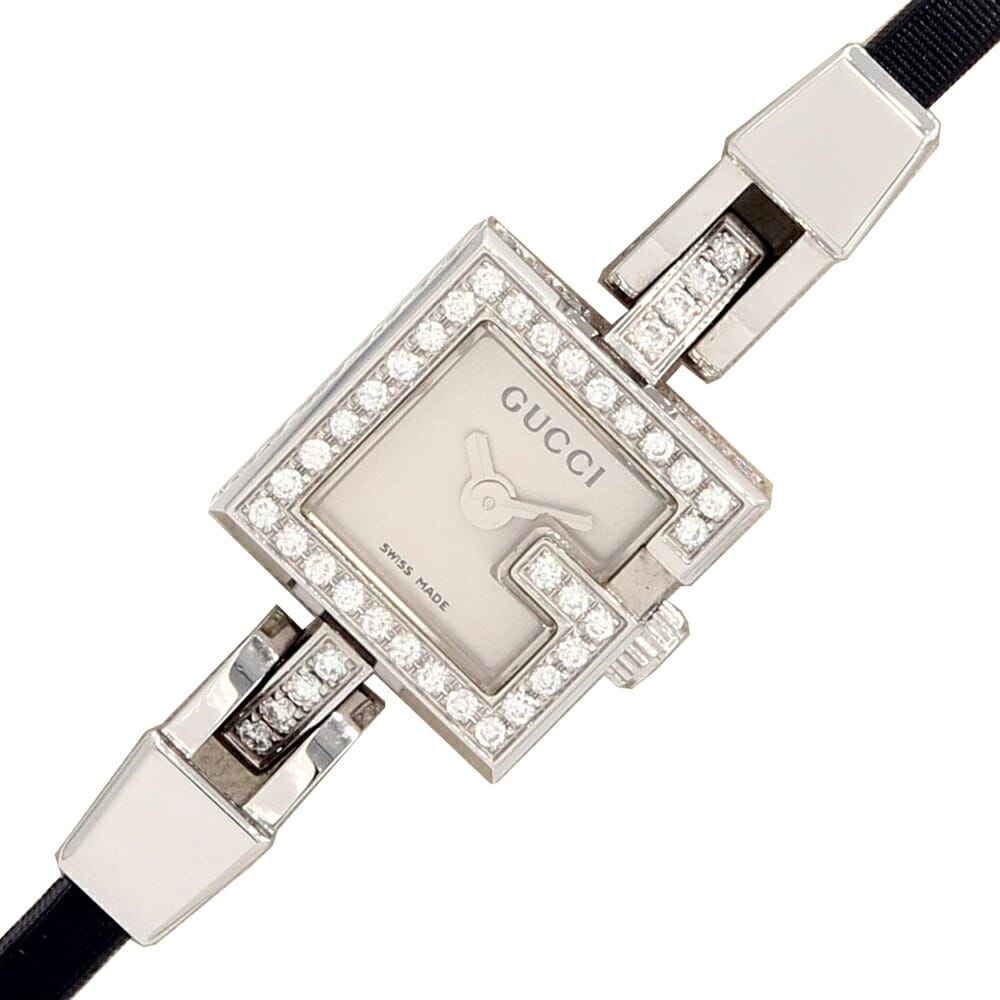 グッチ レディースウォッチ Gミニ ダイヤベゼル 102 シルバー文字盤 ステンレススチール レザー クオーツ 中古 腕時計 電池式 バングルウォッチ レディース