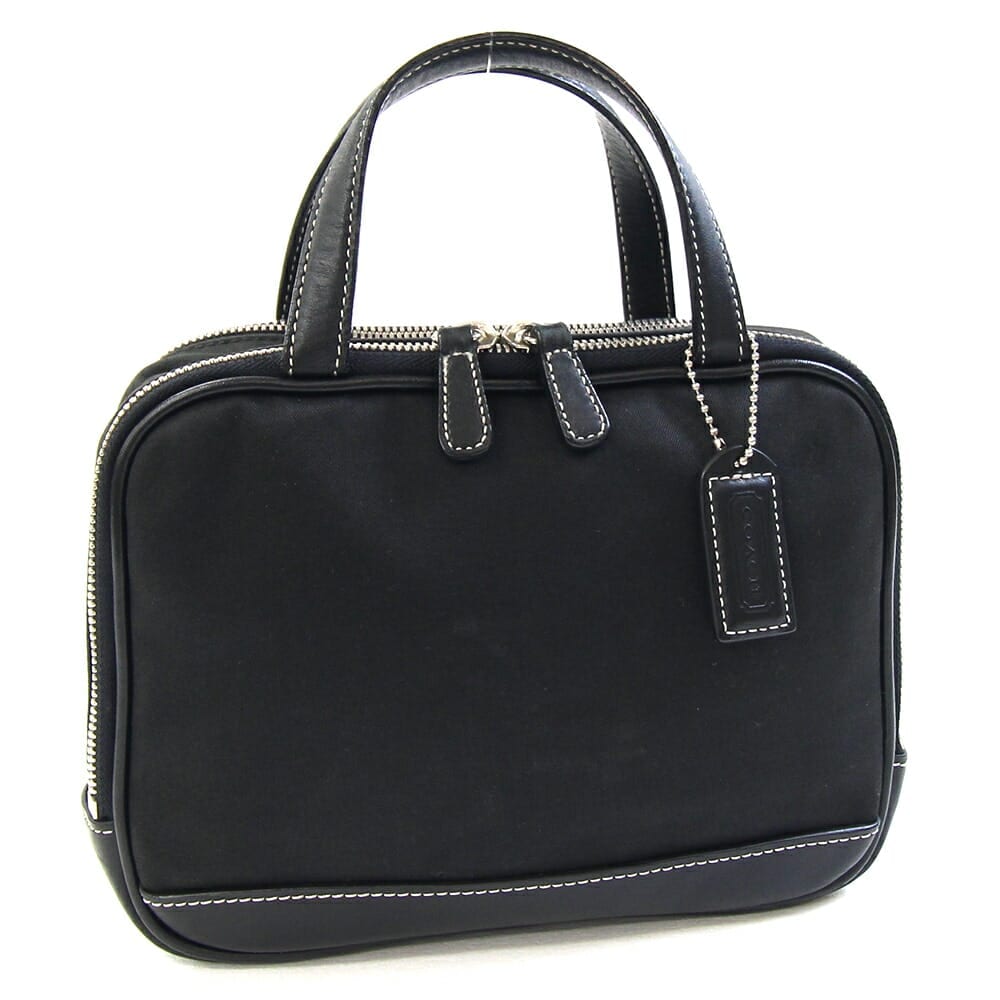 コーチ ハンドバッグ ブラック キャンバス レザー 中古 ミニバッグ 2層式 ステッチ レディース 女性