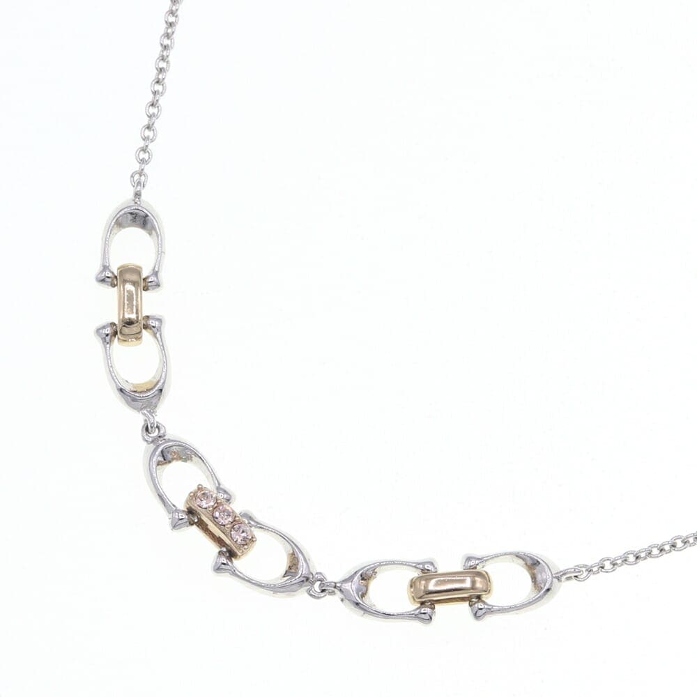 コーチ ネックレス リンクド シグネチャー 5974 シルバー ゴールド メタル ラインストーン 中古 ペンダント アクセサリー ロゴ レディース