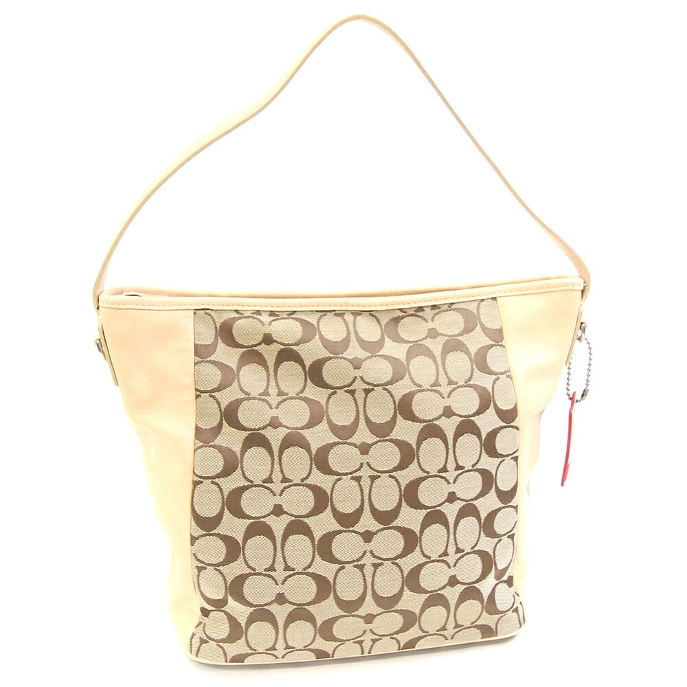 コーチ ショルダーバッグ シグネチャー F17088 ベージュ ダークブラウン キャンバス レザー 中古 斜め掛け 肩掛け レディース 女性