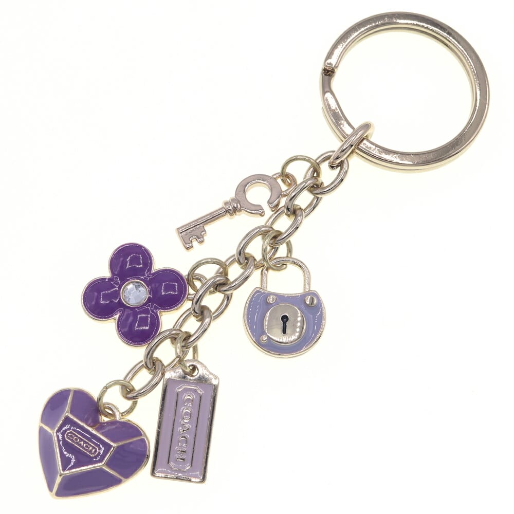 コーチ キーリング パープル ゴールド メタル 中古 バッグチャーム キーホルダー フラワー カデナ ハート レディース
