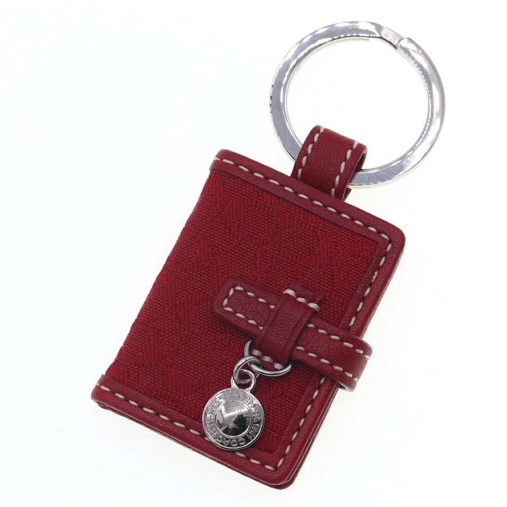 コーチ キーリング ミニシグネチャー ピクチャーフレーム レッド キャンバス レザー 中古 キーホルダー バッグチャーム 写真 フォトケース ミニ スモール