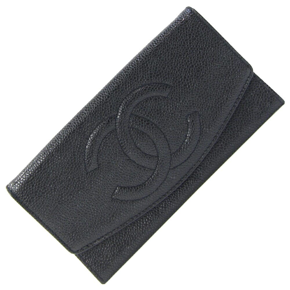 シャネル 二つ折り長財布 ココマーク ブラック キャビアスキン 中古 ロングウォレット ヴィンテージ オールド レディース デカココ