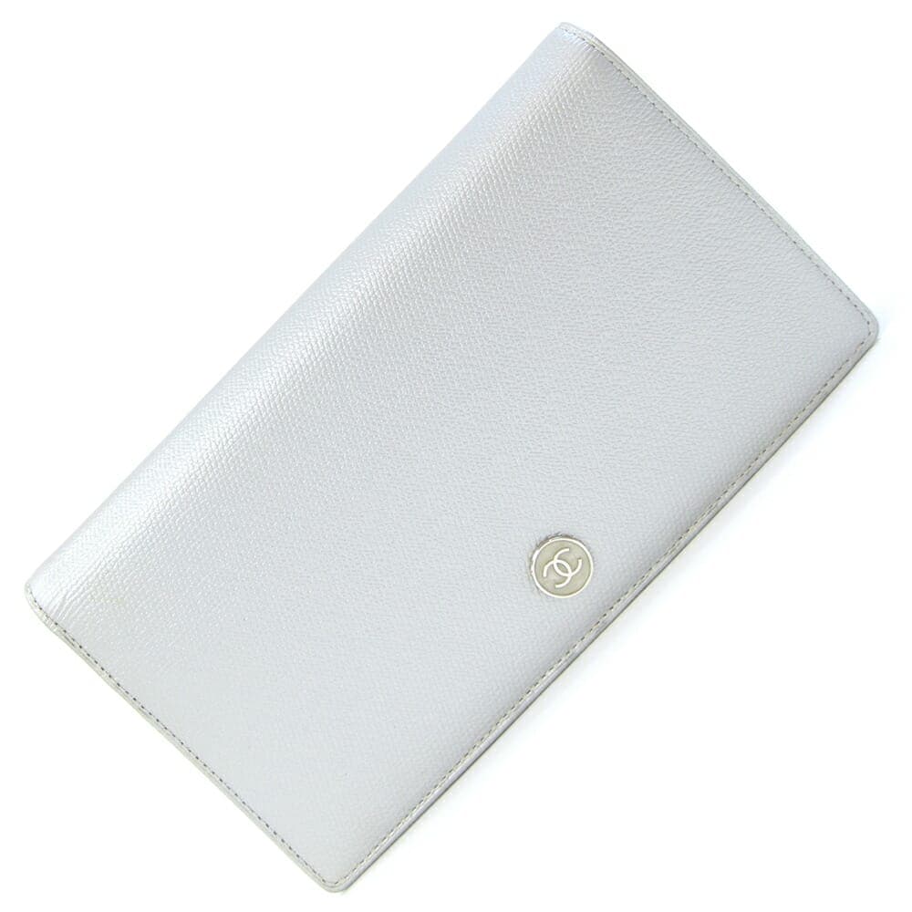 シャネル 二つ折り長財布 ココボタン A20904 シルバー レザー 中古 ロングウォレット ココマーク レディース