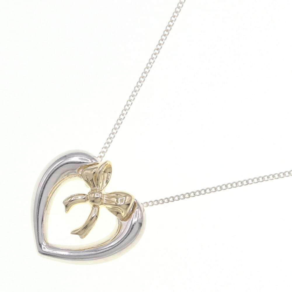 ティファニー ネックレス ハート&リボン ペンダント SV スターリングシルバー925 750 イエローゴールド 中古 コンビ アクセサリー レディース 女性 ヴィンテージ