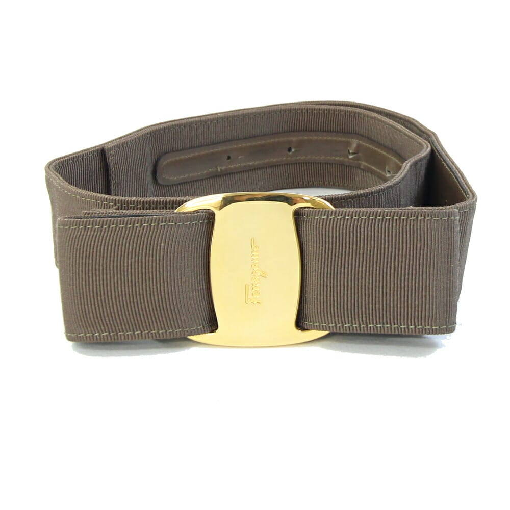 フェラガモ ベルト ヴァラ 8046 ブラウン キャンバス Sサイズ 中古 ファッション リボン ロゴ 飾りベルト レディース Salvatore