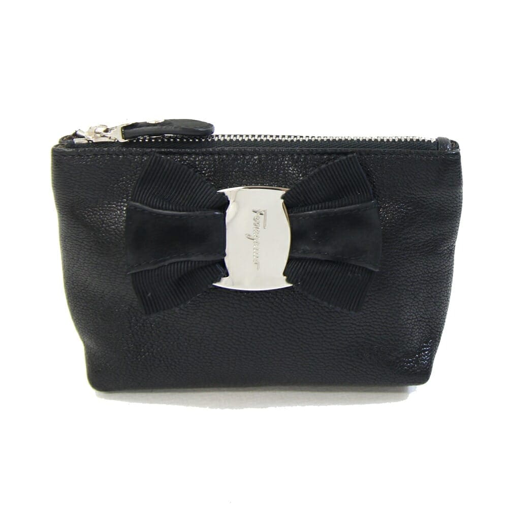 フェラガモ ポーチ ヴァラ 22 8291 ブラック レザー 中古 小物入れ リボン ミニポーチ ロゴ レディース Salvatore
