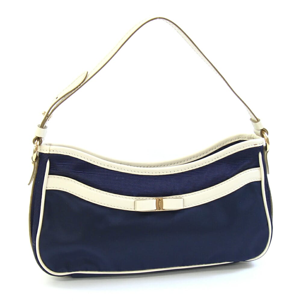 フェラガモ アクセサリーポーチ ヴァラ 21 C642 ネイビー アイボリーホワイト ナイロン レザー 中古 ワンショルダー ミニバッグ ハンドバッグ リボン レディース Salvatore