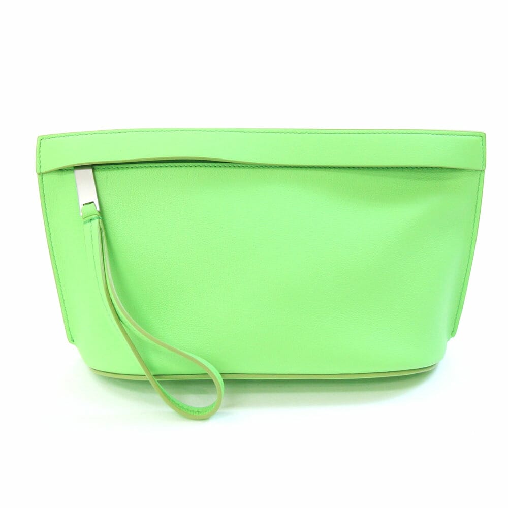 フェラガモ クラッチバッグ 24 1390 ライトグリーン レザー 中古 ポーチ ロゴ レディース 女性 Salvatore
