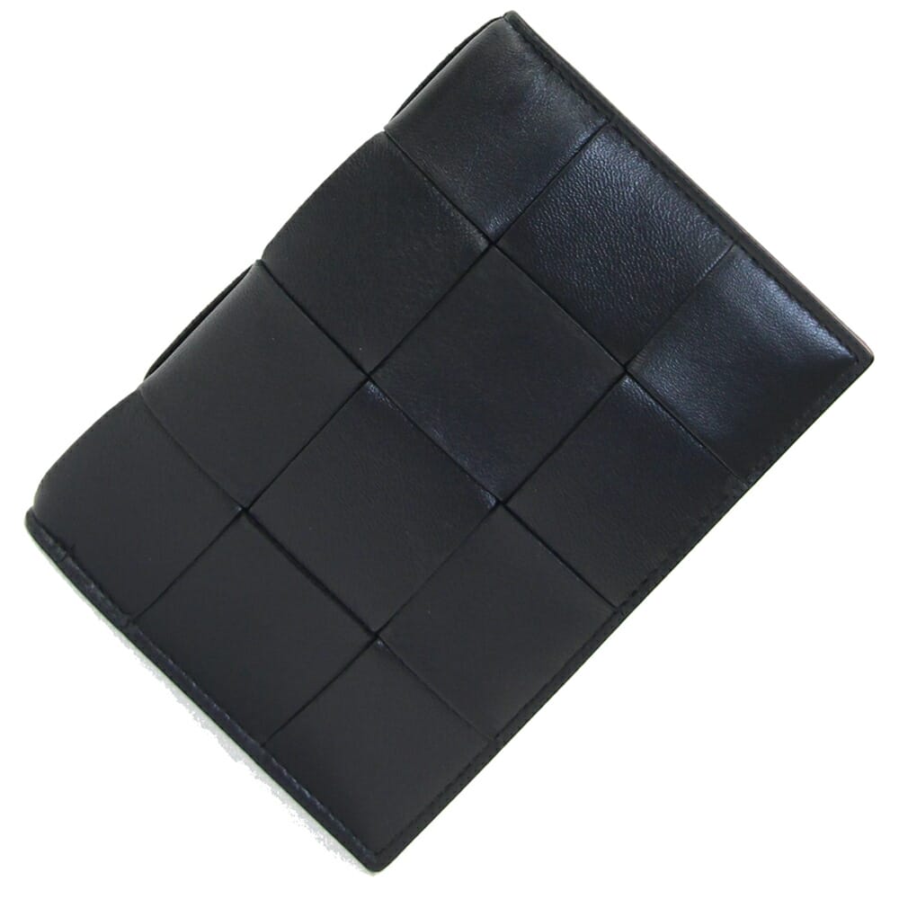 ボッテガヴェネタ 二つ折り財布 イントレチャート 193642 ブラック レザー 中古 コンパクトウォレット 折財布 編み込み メンズ 男性 BOTTEGA