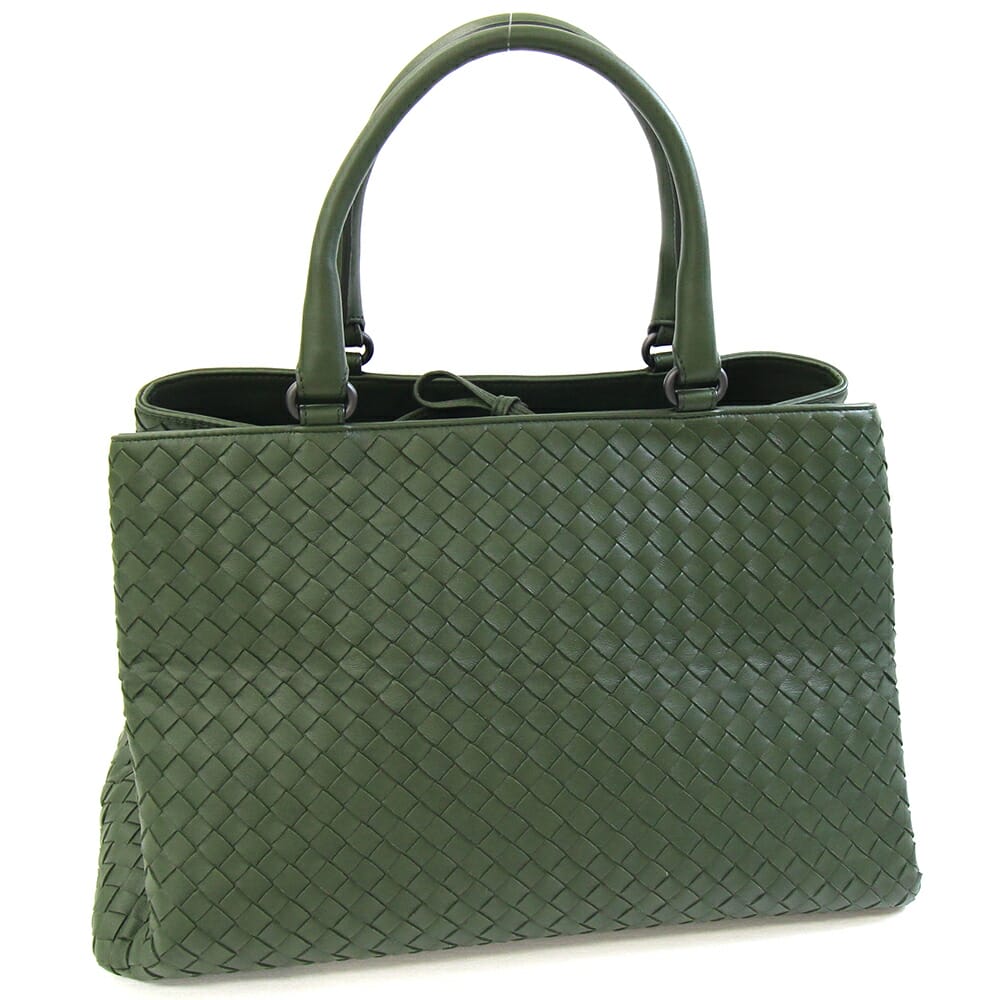 ボッテガヴェネタ トートバッグ イントレチャート 223377 グリーン系 レザー 中古 深緑 アイビーグリーン ハンドバッグ 編み込み 肩掛け レディース BOTTEGA