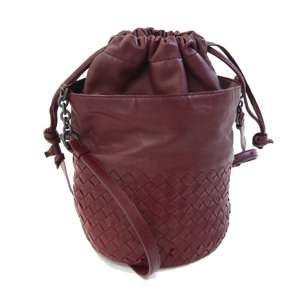 ボッテガヴェネタ ショルダーバッグ イントレチャート ボルドー レザー 中古 斜め掛け 巾着 チェーン クロスボディ レディース BOTTEGA