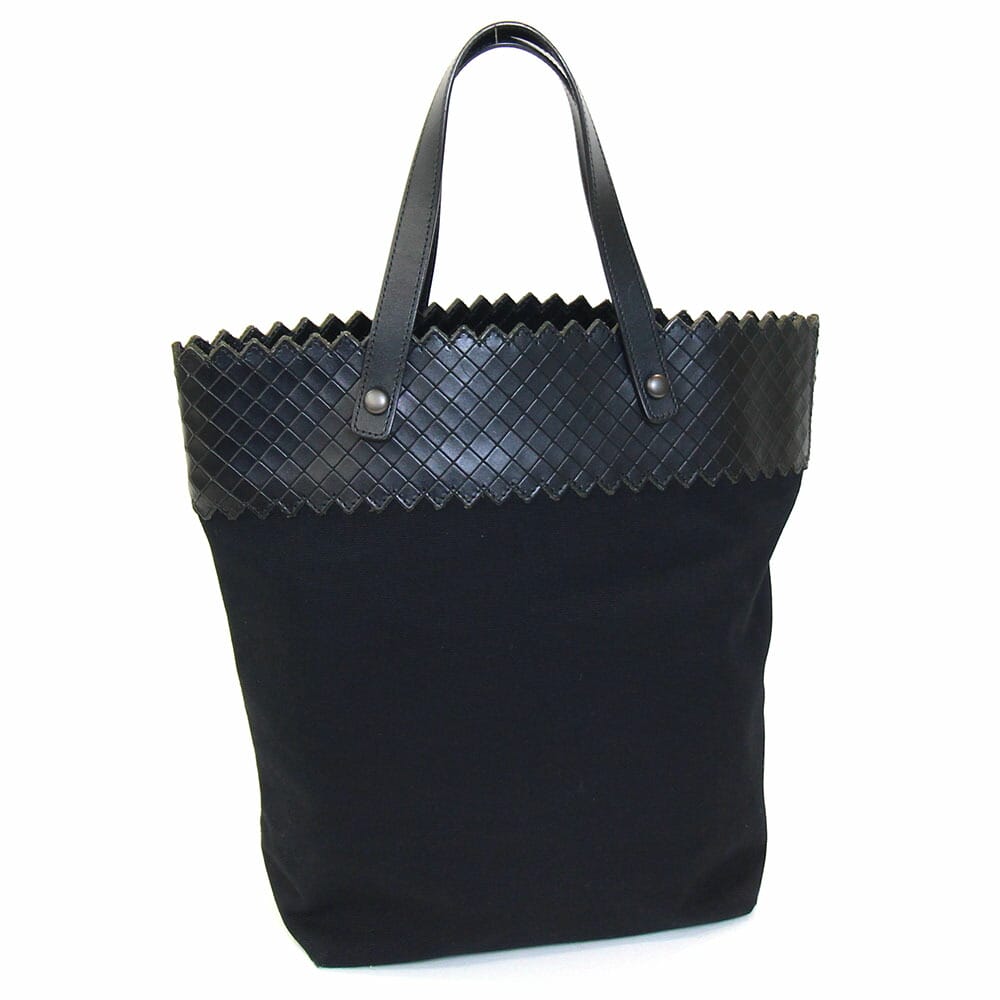 ボッテガヴェネタ ハンドバッグ イントレチャート 284127 ブラック キャンバス レザー 中古 トートバッグ ヴェンテージ レディース BOTTEGA