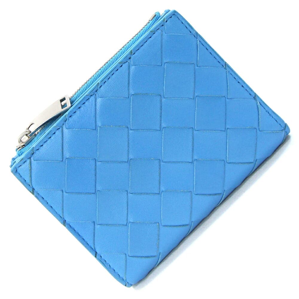 ボッテガヴェネタ 二つ折り財布 イントレチャート 608059 ブルー レザー 中古 コンパクトウォレット ミニ財布 レディース BOTTEGA