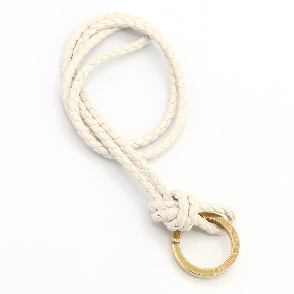 ボッテガヴェネタ ネックストラップ イントレチャート ロングキーリング 755000 チョーク レザー 中古 キーホルダー ロングストラップ ホワイト レディース メンズ BOTTEGA