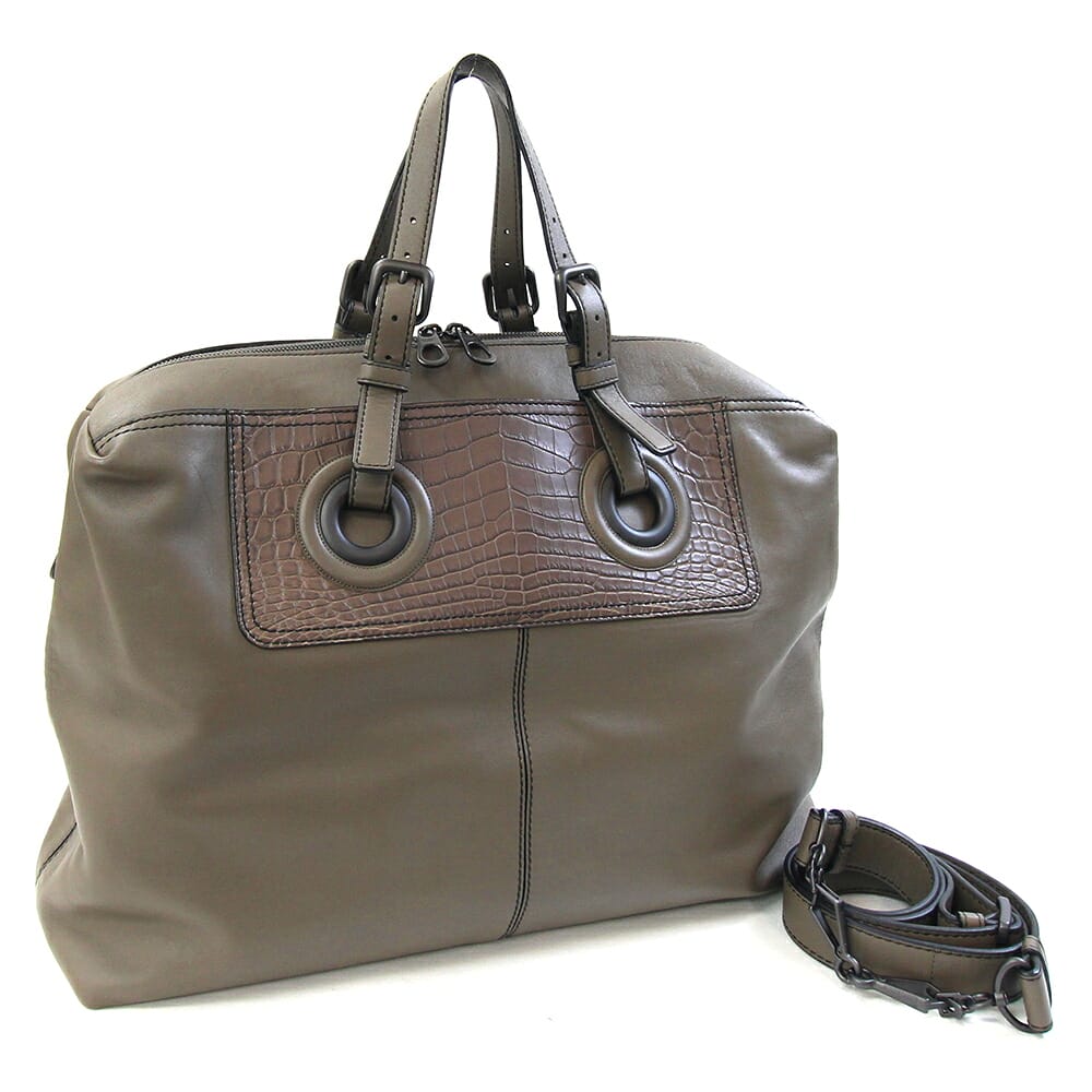 ボッテガヴェネタ 2WAYハンドバッグ ブラウン系 レザー クロコダイル 中古 エキゾチックレザー ボストンバッグ ショルダー メンズ レディース BOTTEGA