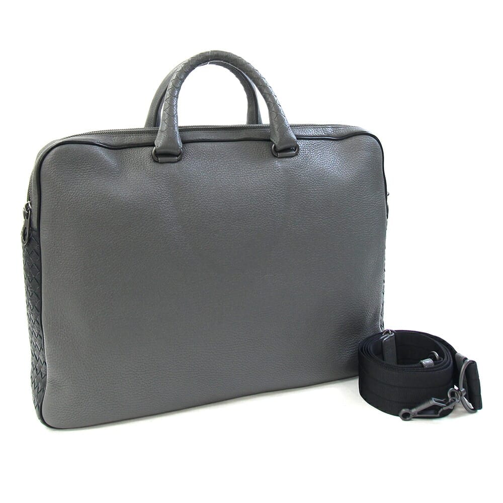 ボッテガヴェネタ 2WAYブリーフケース イントレチャート 440242 グレー ブラック レザー 中古 書類カバン ショルダー ビジネス 編み込み メンズ 男性 BOTTEGA