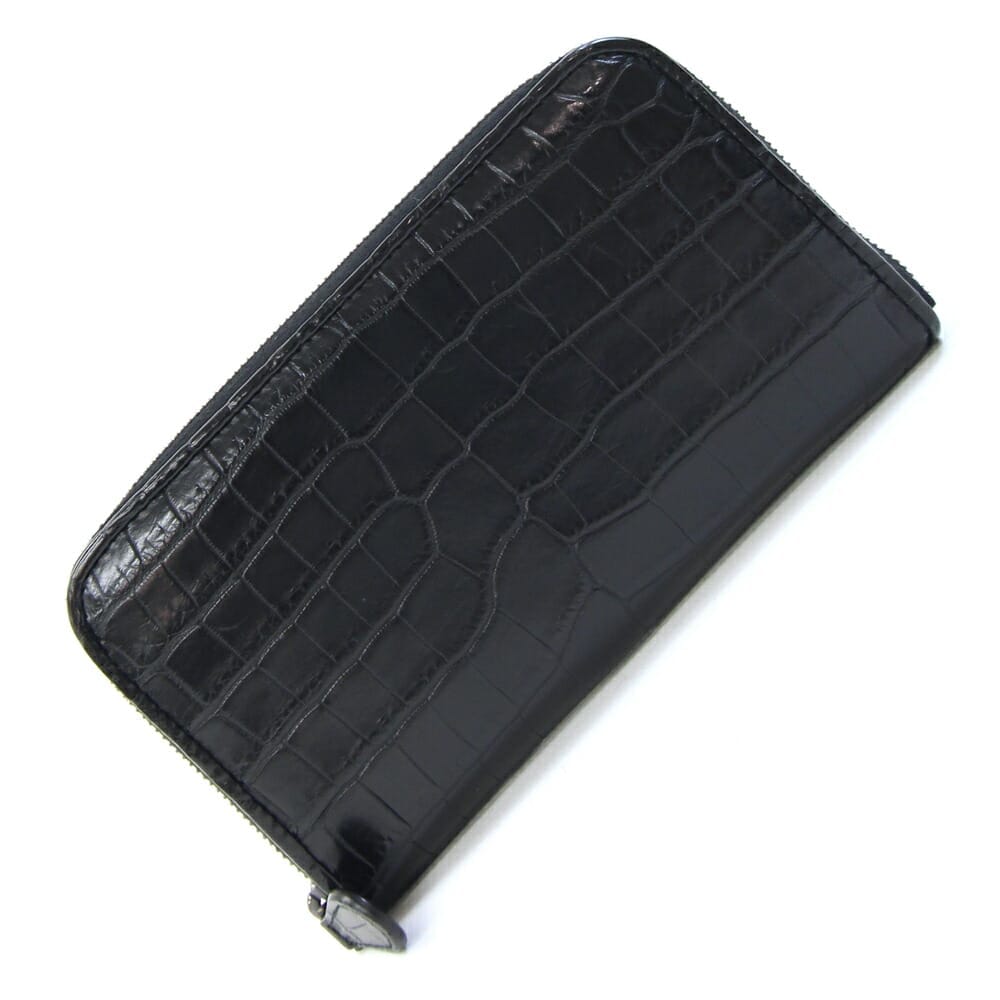 ボッテガヴェネタ ラウンドファスナー長財布 114076 ブラック クロコダイル 中古 ロングウォレット エキゾチックレザー 鰐 ワニ革 メンズ レディース BOTTEGA
