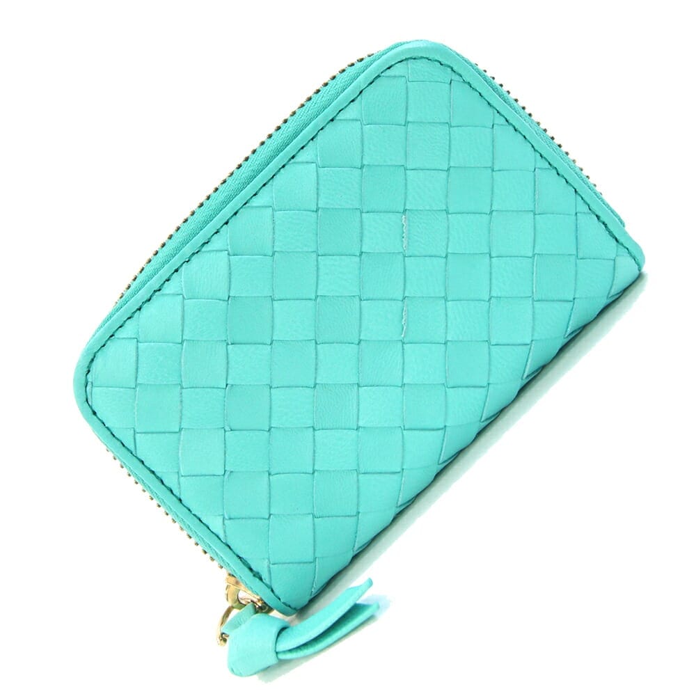 ボッテガヴェネタ コインケース イントレチャート 114075 エメラルドブルー系 レザー 中古 小銭入れ ミニ財布 編み込み コンパクトウォレット レディース BOTTEGA