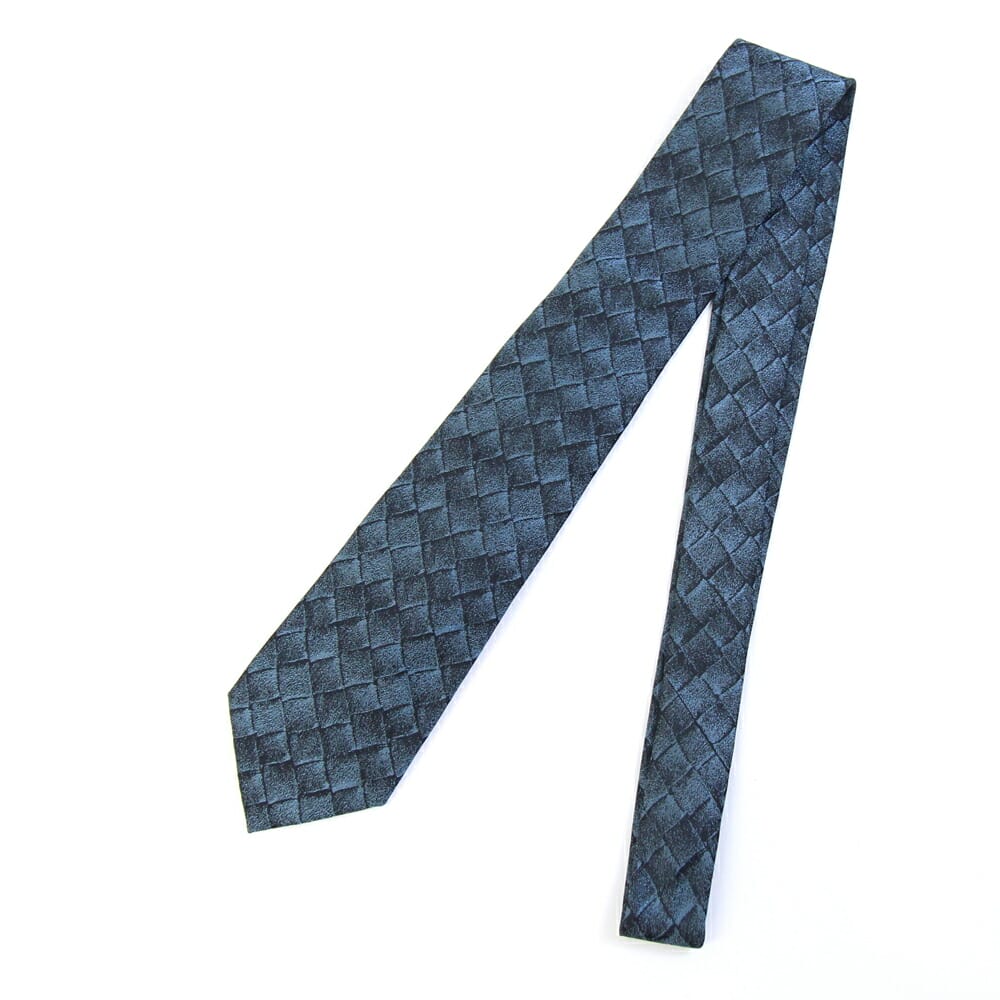 ボッテガヴェネタ ネクタイ イントレチャート ブルー系 ブラック シルク100% 中古 スーツ ビジネス フォーマル メンズ 男性 BOTTEGA