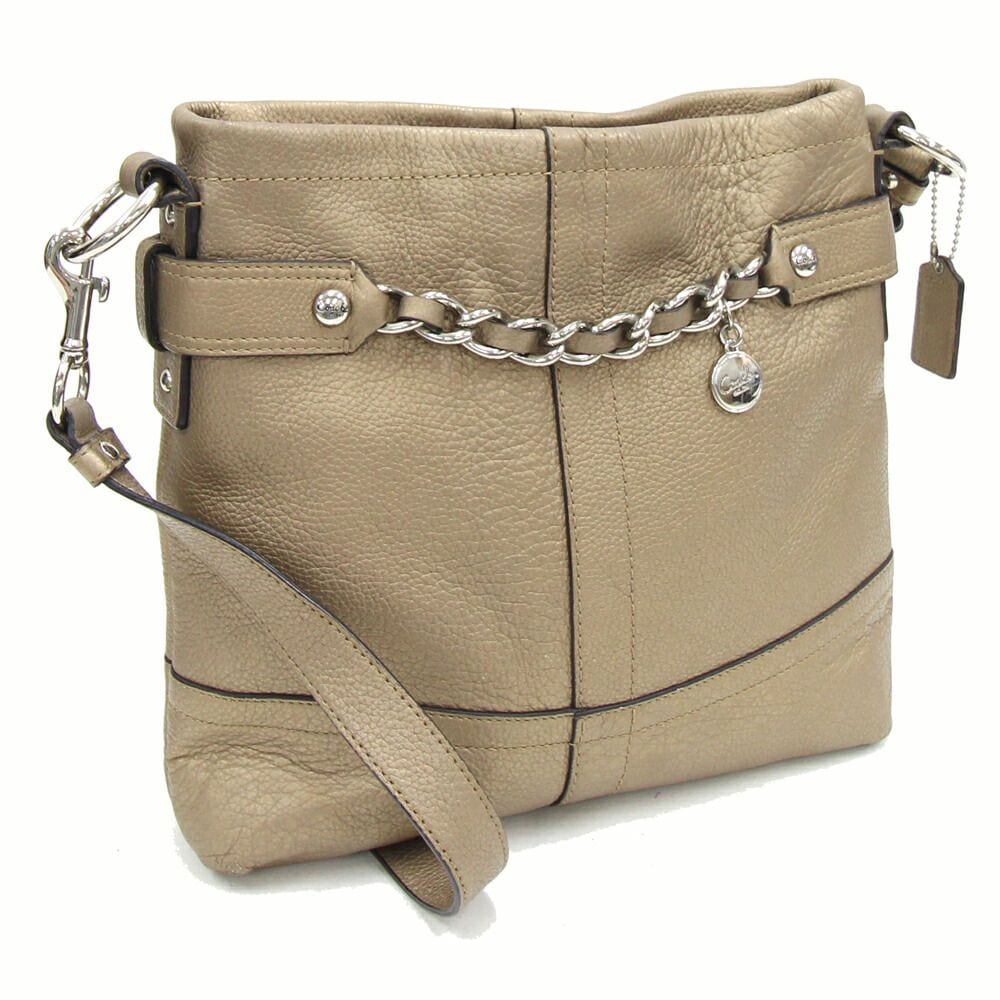 コーチ ショルダーバッグ F18863 ゴールドブラウン系 レザー 中古 斜め掛け 肩掛け チェーン ロゴ レディース 女性