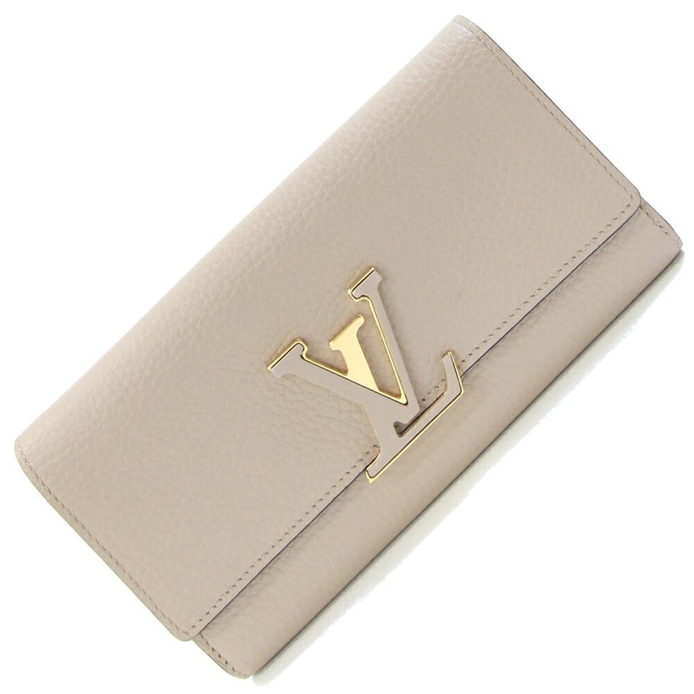 ルイヴィトン 二つ折り長財布 ポルトフォイユ カプシーヌ M61249 ガレ トリヨンレザー 中古 ロングウォレット グレージュ ロゴ レディース LOUIS