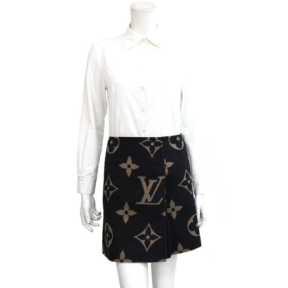 ルイヴィトン スカート RW211W TUV FKSK06 ブラック ベージュ ウール シルク サイズ36 中古 Aライン ミニ アパレル モノグラム ファッション レディース LOUIS