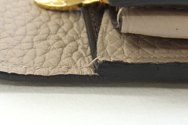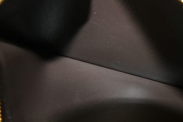 外側:フチに薄キズあり。 内側:カード入れ部分に小キズ、スレあり。小銭入れにも小キズ、薄っすら硬貨ヨゴレあり。 金具:小キズあり。 |