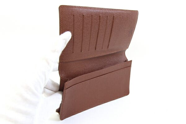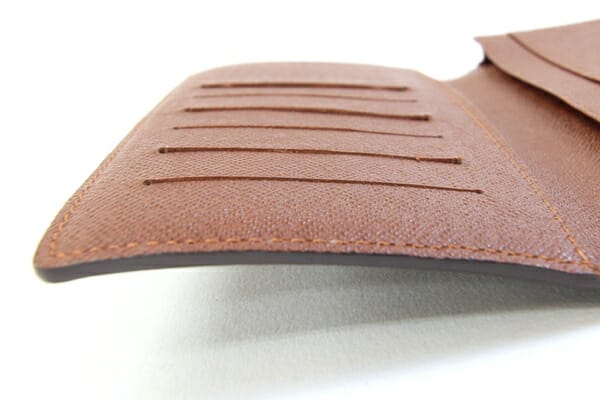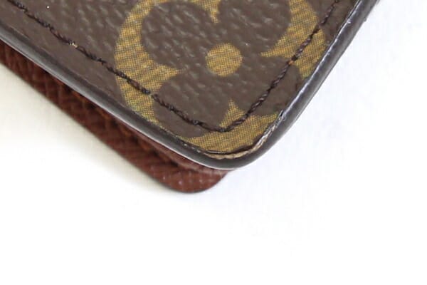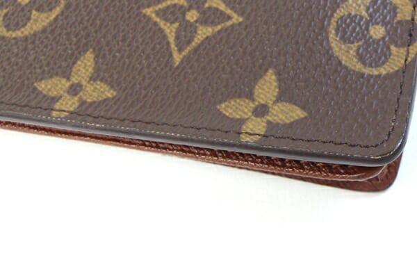 外側:フチ周りに反れが強くあり。モノグラム部分多少テカリ感アリ。角にスレあり。 内側:カード入れに使用跡、フチに薄スレあり。 金具:- |