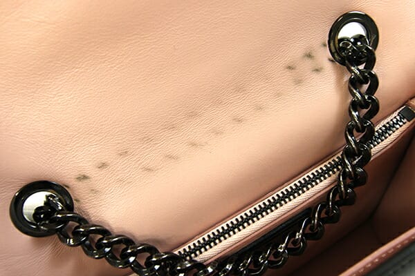 外側:所々薄キズ、薄スレあり。 内側:小キズ、薄汚れあり。フラップ裏に黒いチェーン跡汚れあり。 金具:小キズ、スレ、クスミあり。 |