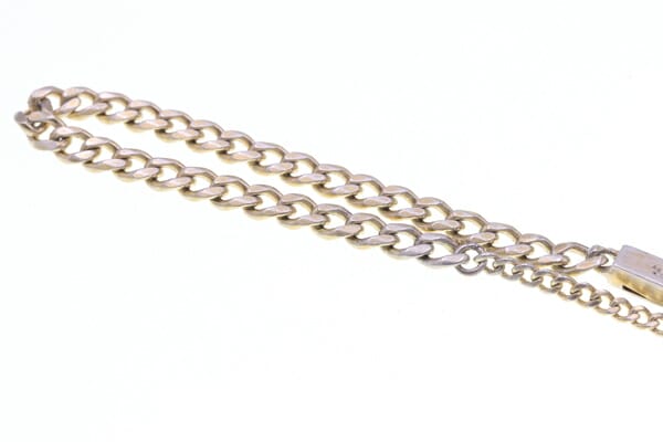 M 刻印 手首周り(内周):約18cm チェーン幅:2.5mm/4.3mm プレート(留め):幅約4.5mm 重さ:約7.7g |