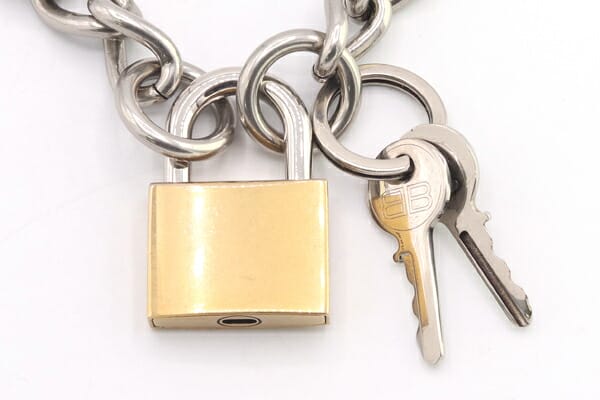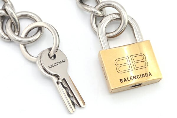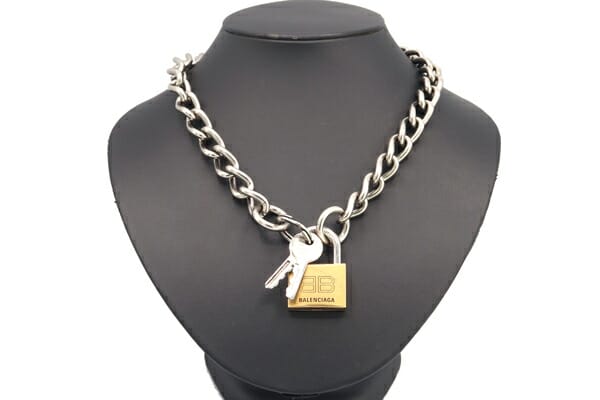 長さ:約43cm チェーン幅:約12mm トップ(カデナ):約27mm×40mm キーリング:直径約21mm 重さ:約159g |