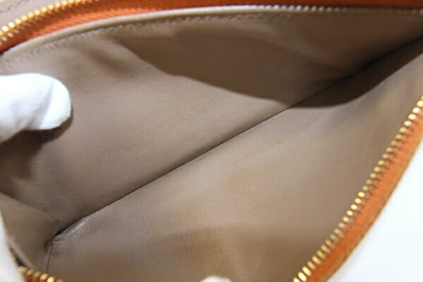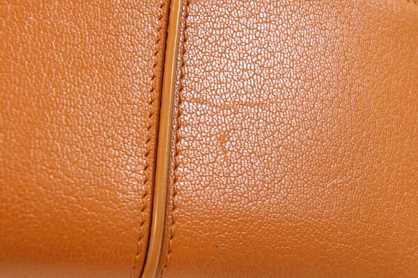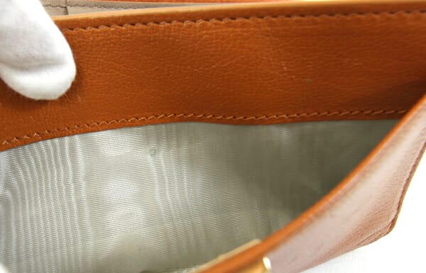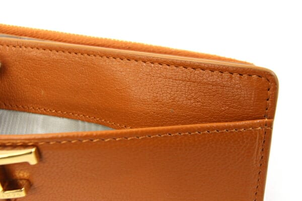 外側:所々小キズあり。フチ周りに薄スレ、薄汚れあり。ファスナー生地に毛羽立ちあり。 内側:薄キズ、ポケット内に若干薄汚れあり。小銭入れに硬貨汚れあり。 金具:小キズ、スレ、若干クスミあり。 |