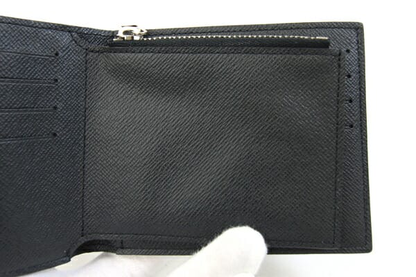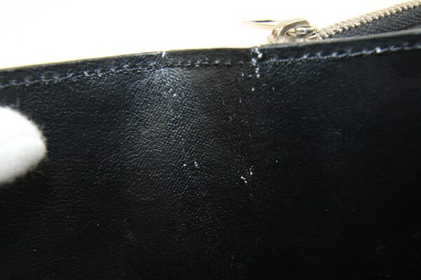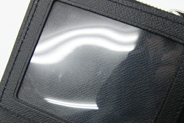 外側:所々微細なスレあり。フチに薄スレ、コ―ティング割れあり。 内側:カード入れ、小銭入れ部分に型崩れあり。札入れにスレ、クリアフィルムに薄汚れあり。小銭入れに硬貨汚れあり。 金具:小キズ、クスミあり。 |