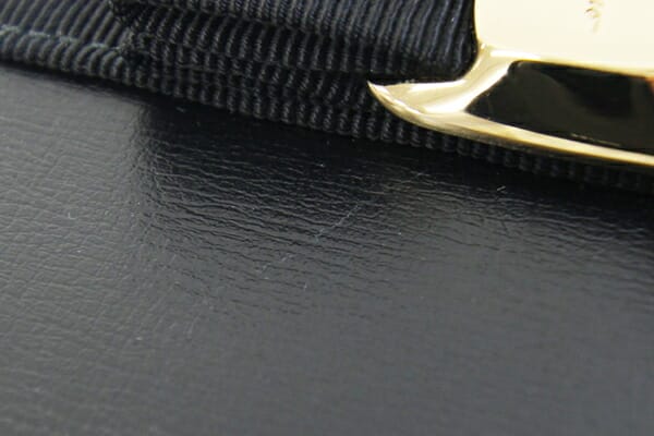 外側:僅かに薄キズ、薄スレあり。リボンに薄汚れあり。 内側:札入れに若干薄スレあり。 金具:薄キズ、薄スレあり。 |