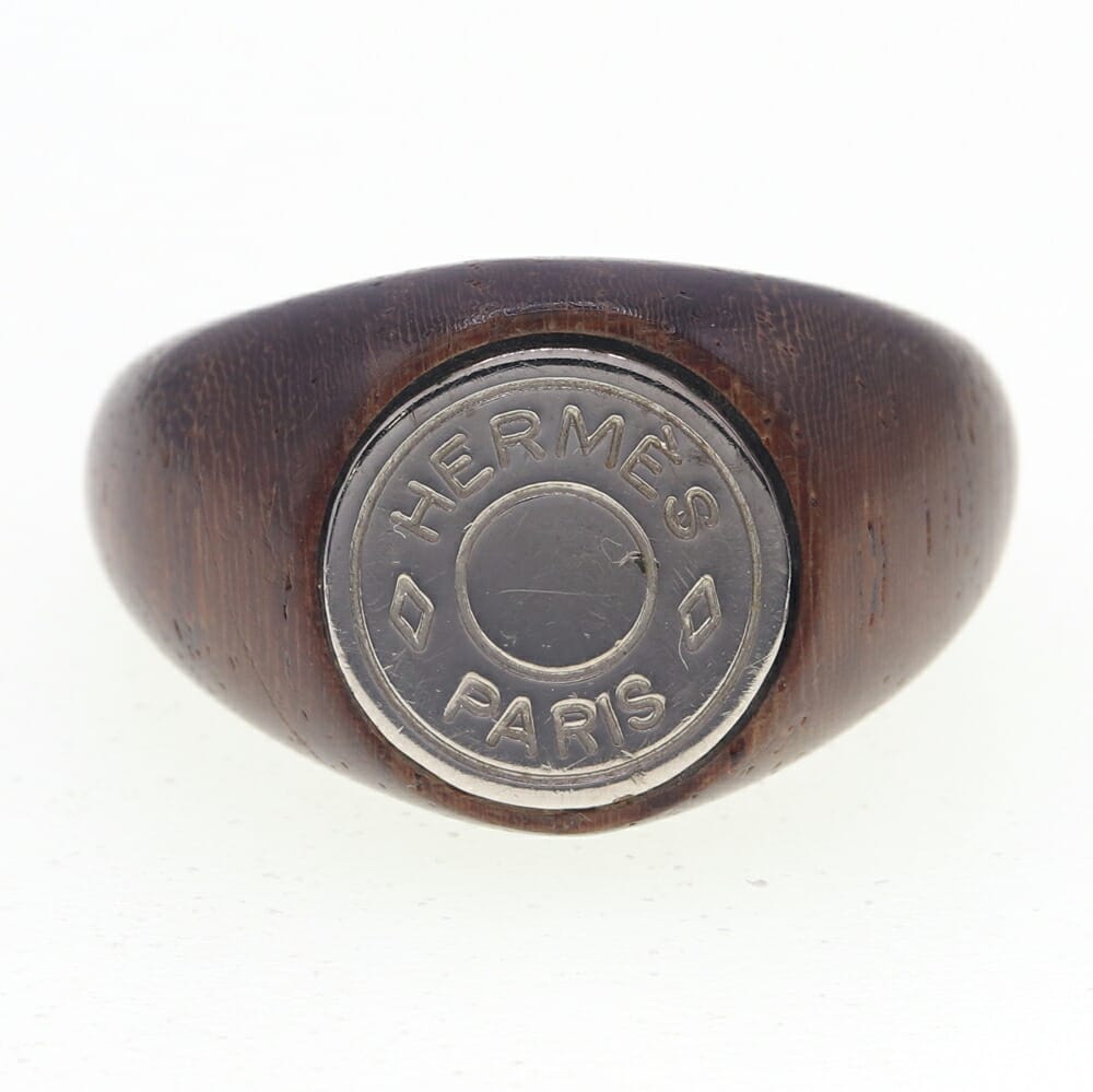 エルメス リング セリエ ブラウン シルバー ウッド メタル 14.5号/US7.5 中古 指輪 アクセサリー ロゴ レディース