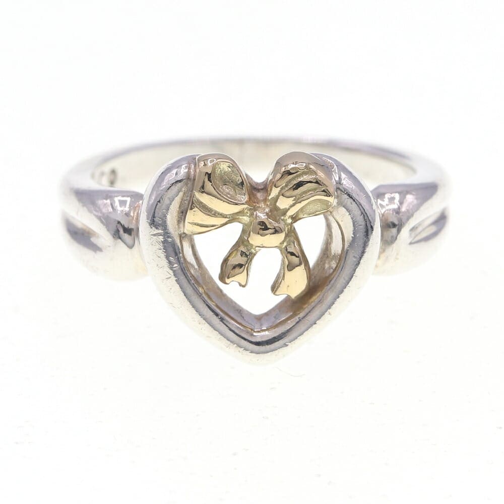 ティファニー リング ハート&リボン SV スターリングシルバー925 750 YG US4.5-5/8号中古 指輪 アクセサリー コンビ オールド ヴィンテージ レディース