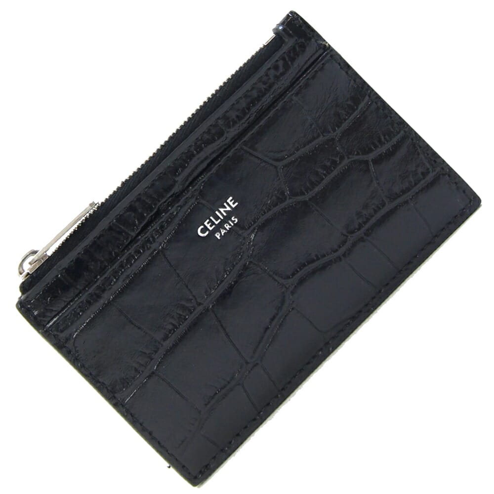 セリーヌ カードケース ジップカードホルダー 10F993CUV.38SI ブラック クロコ型押しレザー 中古 コインケース 小銭入れ フラグメントケース ミニ財布 コンパクトウォレット レディース