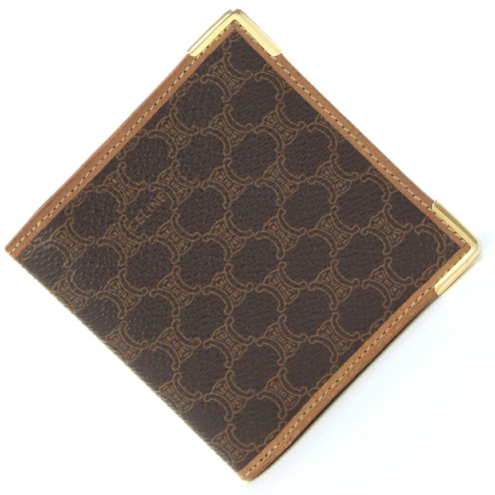 セリーヌ 二つ折り財布 マカダム ブラウン PVC レザー 中古 コンパクトウォレット ミニ財布 ヴィンテージ オールド レディース