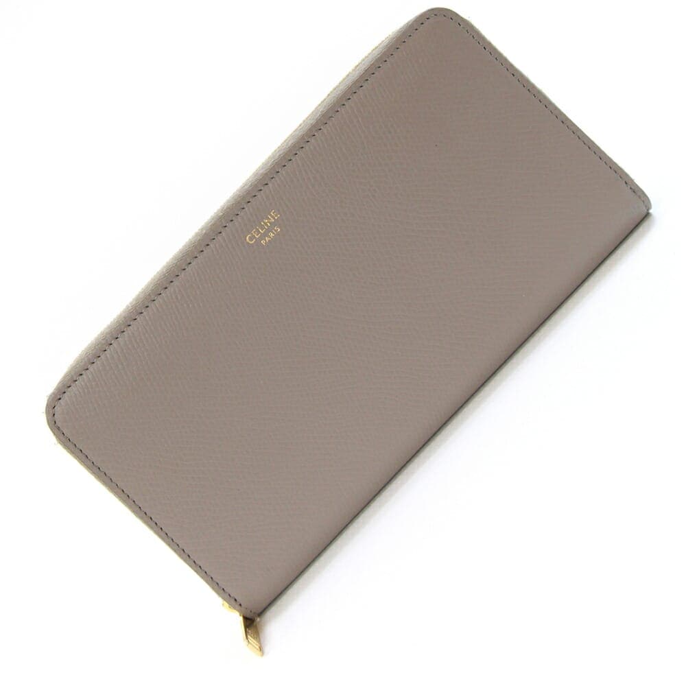 セリーヌ ラウンドファスナー長財布 ラージ ジップドウォレット 10B553BEL.10BL グレージュ レザー 中古 ロングウォレット ラウンドジップ ロゴ レディース