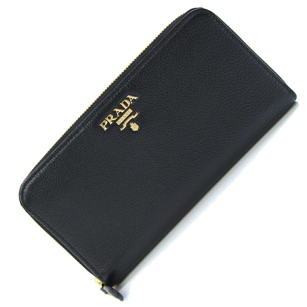 プラダ ランドファスナー長財布 1ML506 ブラック ゴールド金具 レザー 中古 ロングウォレット ラウンドジップ ロゴ レディース